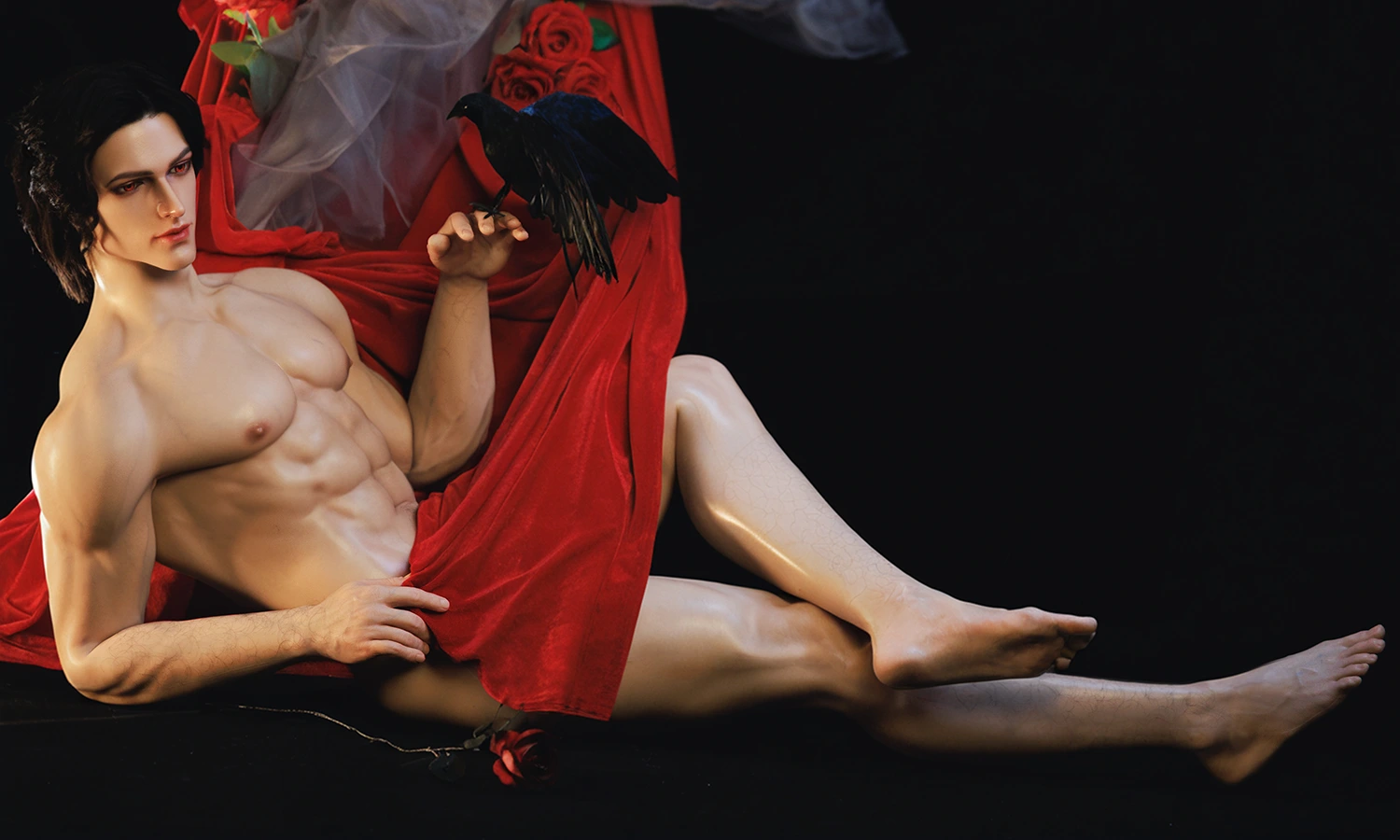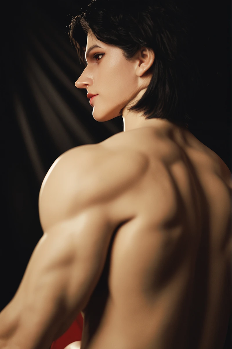 180cmの男性型リアルドールボディと組み合わせることで、全体としてすらりとした端正な体躯を実現。立位では重心が安定し、ラインは自然に伸び、座位では関節のつながりが滑らかで、リラックスした姿勢の中にも十分な支えを感じさせます。